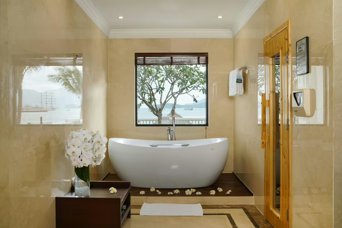 - Deluxe ocean view (without vinwonder access): 45 кв м, главное здание, спальня, 2 односпальные кровати (1,1м х 2м) или двуспальная кровать (2м х 2м), ванная комната, балкон, вид на море